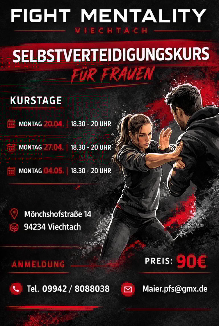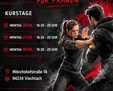 Am Montag 20.04.2026 startet ab 18:30 Uhr der erste Selbstverteidigungskurs für Frauen.