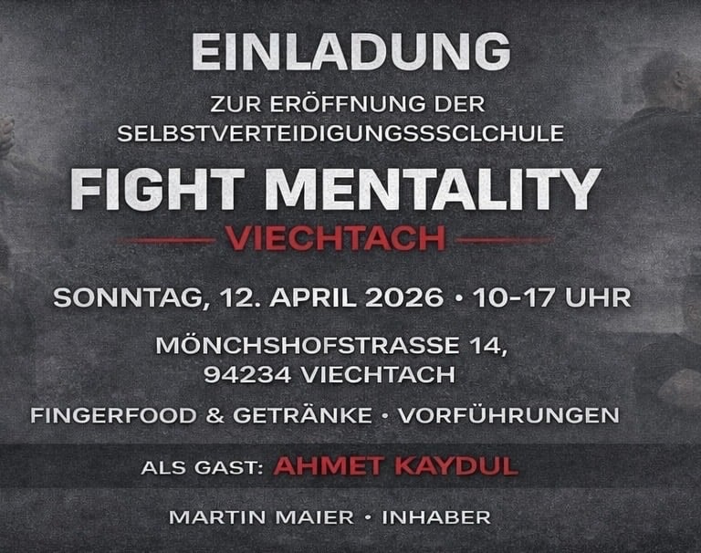 Am Sonntag 12.04.2026 findet von 10:00 bis 17:00 Uhr die Eröffnung der Selbstverteidigungsschule statt. Lernen sie uns, unsere Räume und unsere Trainingsmodelle kennen. Auch bei kurzen Live-Vorführungen unter anderem mit Ahmet Kaydul sehen sie unsere Arbeit.